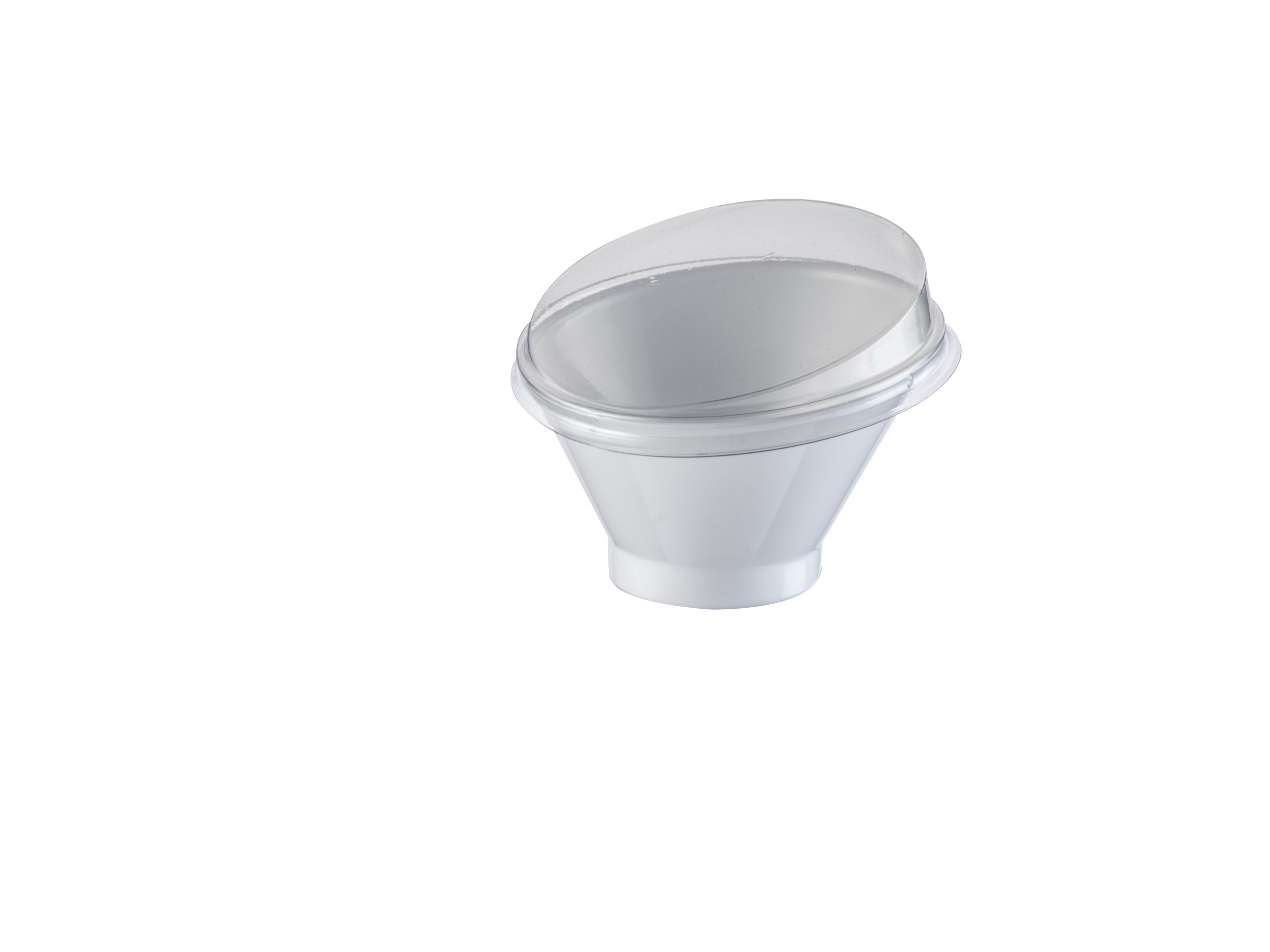 This mini dish is made out of recyclable plastic and embraces an eco-friendly image. Its crystal-clear plastic allows Chefs to put forward the different layers of their chocolate mousse or the various elements of their culinary creation.
